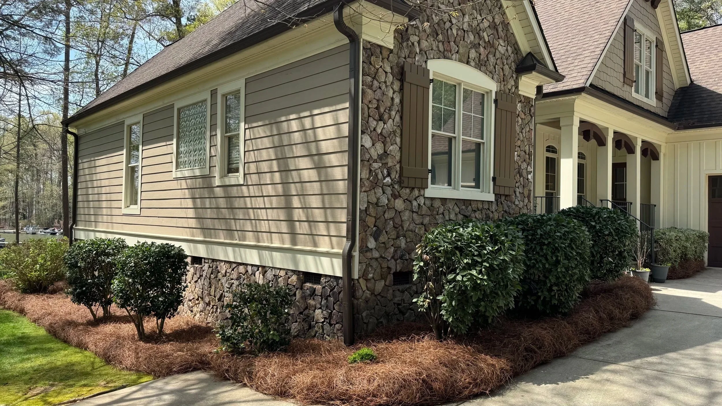 Beds mulched 1-2 times a year for that finished look.